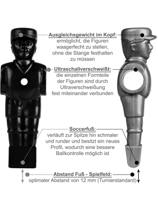 Pri vývoji TUNIRO® figúrok hráčov sa jedná o náročný vývoj spoločne s hráčmi Bundesligy a vedúcimi predstaviteľmi BTFV. Sada figúrok hráčov sa skladá z 22 figúrok a zodpovedajúcich skrutkových a maticových súprav. Jednotlivé tvarované časti figúrok sú navzájom pevne spojené ultrazvukovým zváraním. Ďalej je v hlave figúrok uložené vyrovnávacie závažie, takže je možné umiestniť ich vodorovne bez sklopenia nadol. Noha bola kompletne prepracovaná, smerom k špičke je užšia a guľatejšia, čo umožňuje lepšie ovládanie lopty.