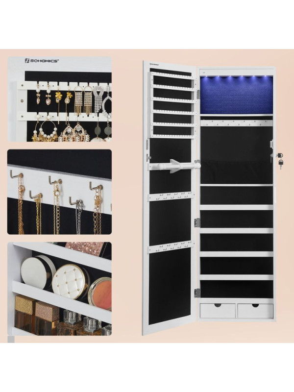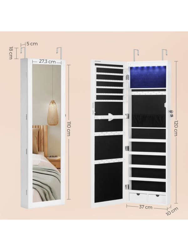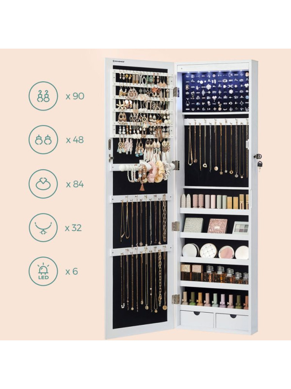 Vneste do svojho domova poriadok a štýl s touto modernou šperkovnicou, ktorá ponúka dostatok priestoru pre všetky vaše poklady. LED osvetlenie a veľké zrkadlo spríjemnia každý deň a dodajú šmrnc vášmu interiéru.