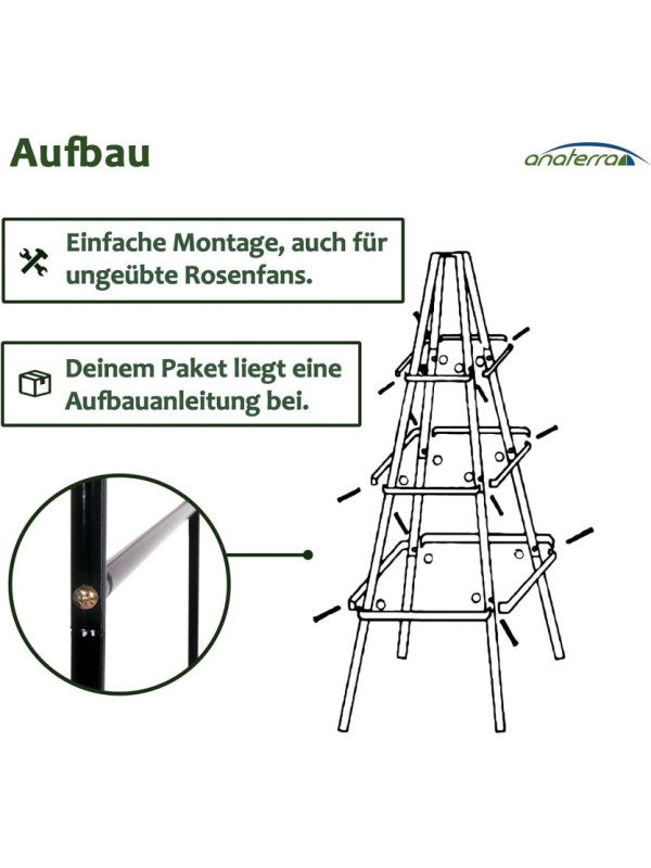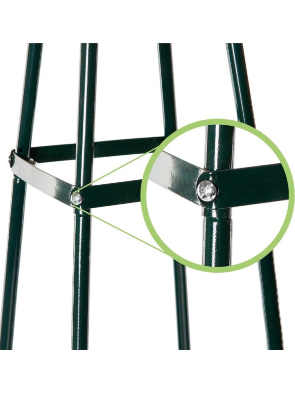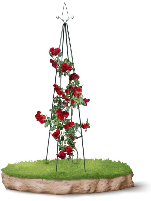 Dodáte svojej záhrade šmrnc a výšku s touto kovovou oporou pre rastliny. Skvele vynikne medzi kvetinami, podporí rast popínavých rastlín a vytvorí pôsobivú vertikálnu dekoráciu. Vhodný pre ruže, brečtan, clematis aj zeleninu. Každý kút záhrady získa nový život a harmóniu.