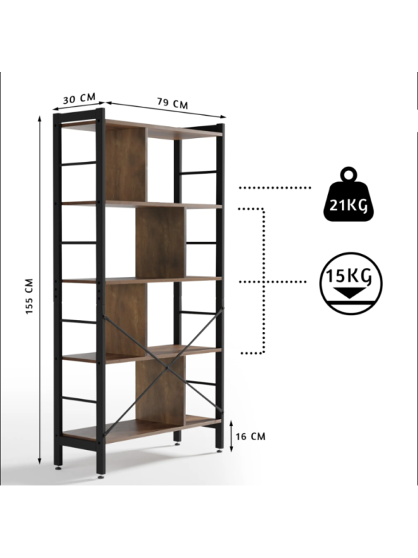 Miadomodo Knižnica v retro štýle, 79 x 30 x 155 cm