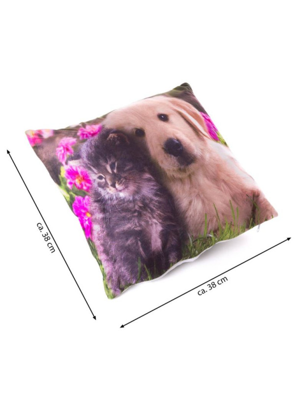 Dekoračný vankúš s LED osvetlením Mačka a pes - 38 x 38 cm