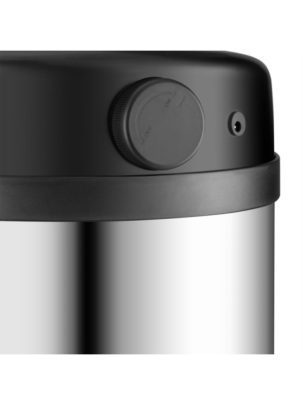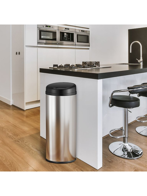 Objem 50 litrov poskytuje dostatok priestoru aj pre väčšiu domácnosť. Kôš je vyrobený z nerezovej ocele s odolným plastovým vekom a vďaka praktickému krúžku vo vnútri drží vrece pevne na mieste. Automatické otváranie je tiché a spoľahlivé, pričom v prípade potreby je možné využiť aj dotykové ovládanie. Napájanie zaisťujú 4× AA batérie.