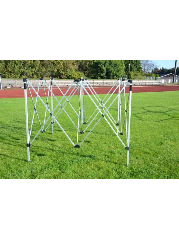Tento záhradný stan je ideálny na všetky možné akcie - na záhradné oslavy, firemné večierky, stánkový predaj, zastrešenie aparatúry na festivaloch apod. Vďaka nožnicovej konštrukcii je možné stan zostaviť a zložiť počas pár minút. Stanová konštrukcia je obdĺžnikového tvaru v šikovnej prenosnej taške, takže s ňou nie je problém cestovať. Záhradný stan Vás ochráni pred priamym slnečným žiarením, nepríjemným dažďom alebo iným nepriaznivým počasím. Bočné steny sú k nohám pripevnené pomocou suchých zipsov a k hornej hrane konštrukcie pomocou háčikov. Nohy stanu sú teleskopicky polohovateľné a majú plastové pätky pre ukotvenie do zeme.