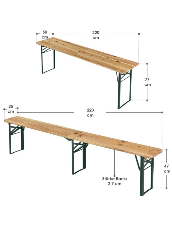 Pivný set 220 cm z jedľového dreva, skladacia, nosnosť 250kg