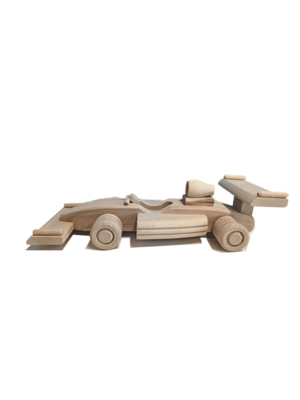 Formula je vyrobená z masívneho bukového dreva, ktoré nie je povrchovo ošetrené. Dekoratívna pojazdná formula z masívneho bukového dreva Vám vydrží niekoľko generácií. Všetko je precízne spracované, drevo obrúsené, kolesá sa dajú otáčať.