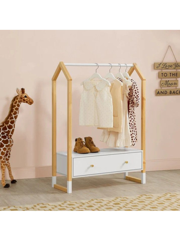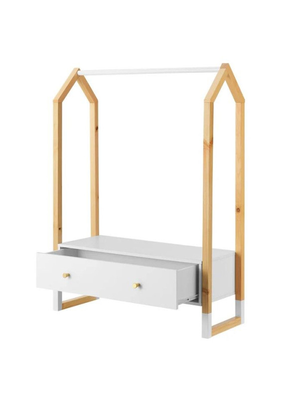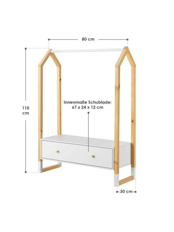Vešiak na oblečenie je ideálnou voľbou pre modernú detskú izbu. Jeho jednoduchý a pritom hravý design podporuje kreativitu a samostatnosť detí. Otvorená konštrukcia umožňuje ľahký prístup ku všetkým veciam a motivuje deti k udržovaniu poriadku.