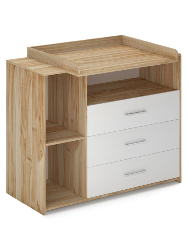 Prebaľovanie na veľkej prebaľovacej ploche - plienky, oblečenie, výrobky pre starostlivosť o dieťa a ďalšie veci na dosah zaistia Vám aj Vášmu dieťaťu pohodlie. Biela farba tohto detského nábytku sa ľahko hodí do rôznych štýlov interiérov. Akonáhle vaše dieťa prebaľovaciemu veku odrastie, môžete prebaľovaciu podložku tohto multifunkčného kusu nábytku jednoducho natrvalo odstrániť. Komoda tak môže byť používaná aj naďalej.