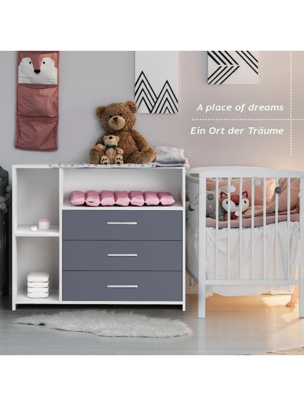 INFANTASTIC Prebaľovací pult, 113 x 53 x 101 cm, biela-sivá