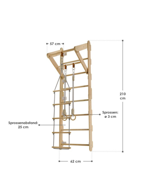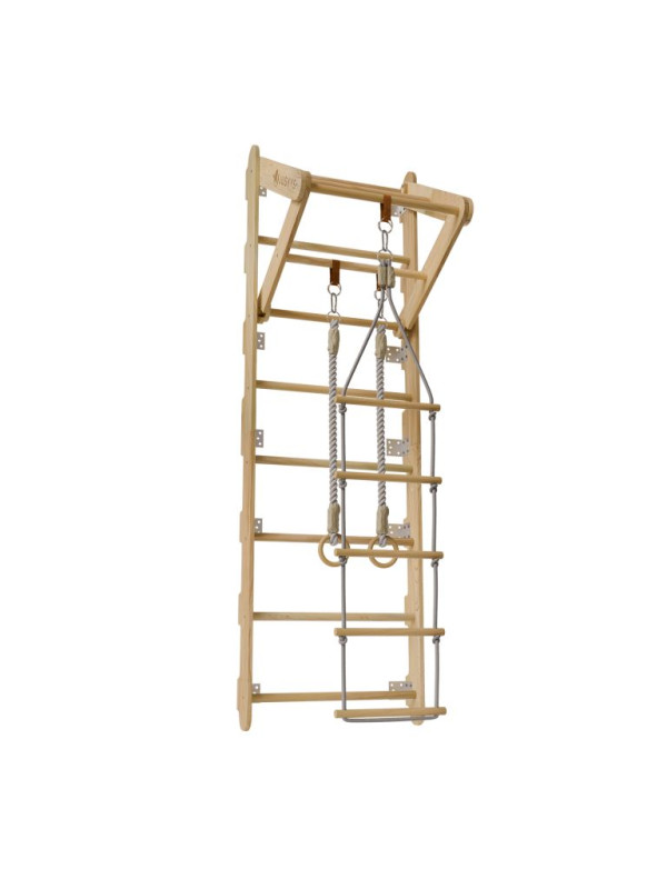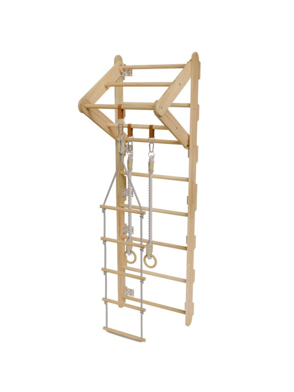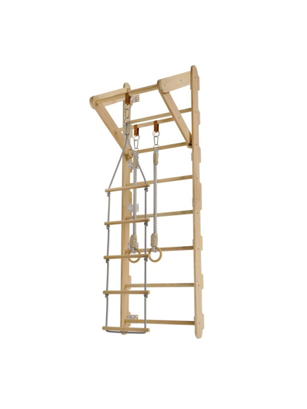Rebriny sú vyrobené z kvalitného prírodného dreva a pevne ukotvené k stene, takže vydržia aj intenzívnejšie detské výkony. Vďaka kompaktným rozmerom sa hodí aj do menších priestorov. Zavesené prvky je možné jednoducho meniť podľa nálady alebo veku dieťaťa. Výborne sa hodí pre deti od 3 do 12 rokov a pomáhajú budovať nielen silu, ale aj sebadôveru.