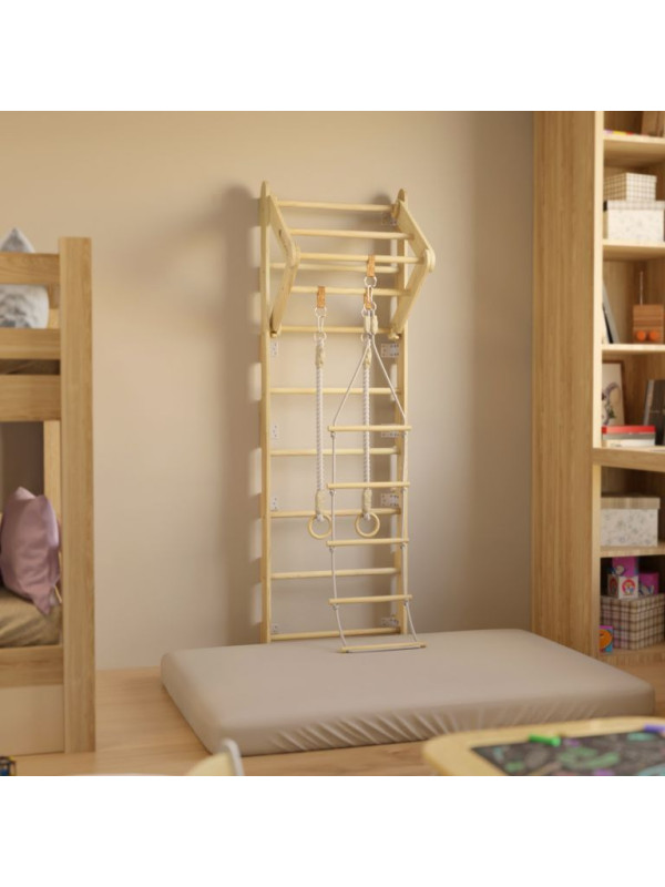 Vneste do detskej izby viac pohybu a radosti. Drevené rebriny s bohatým príslušenstvom poskytnú deťom priestor, kde môžu rozvíjať svoje schopnosti, posilňovať telo a užívať si aktívnu zábavu každý deň. S gymnastickými kruhmi, hrazdou a lanovým rebríkom sa obyčajné hranie premení na dobrodružstvo plné lezenia a objavovania.