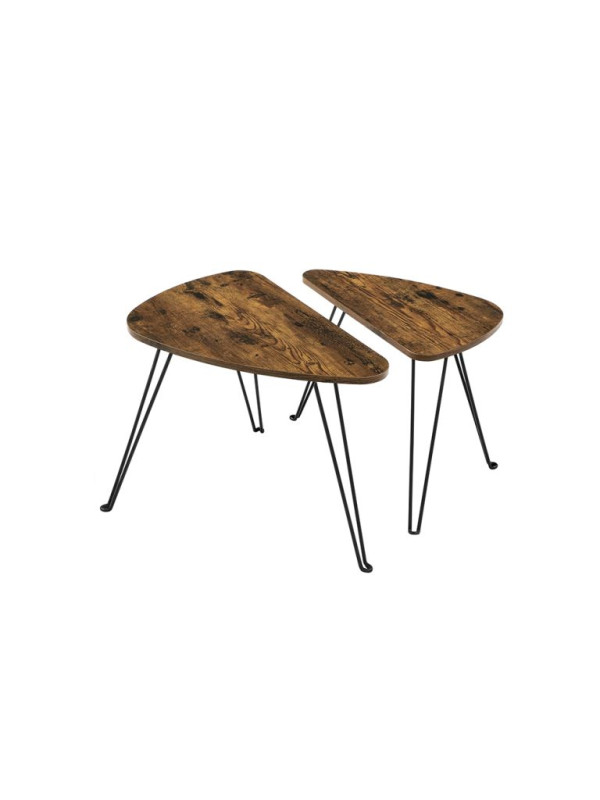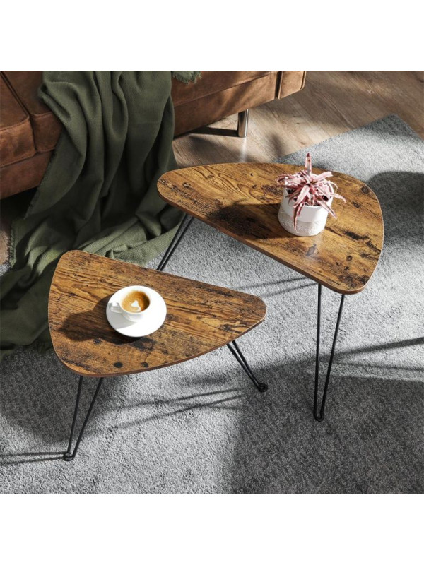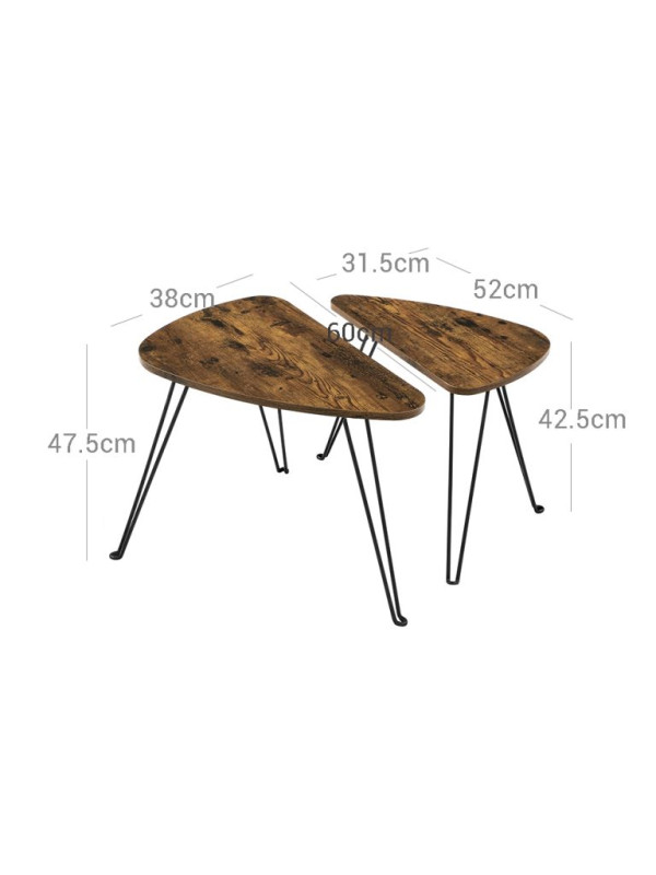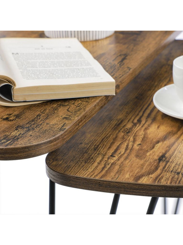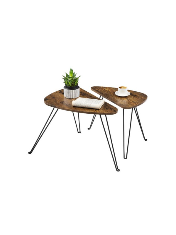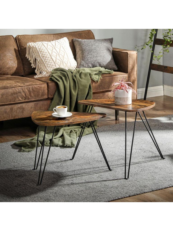Set dvoch odkladacích stolíkov VASAGLE v rustikálnej hnedej a čiernej farbe prináša do vášho interiéru jedinečný industriálny šarm. Vďaka nadčasovému dizajnu sa hodí do obývacej izby, spálne i jedálne a ponúka flexibilné využitie ako nočné stolíky, príručné stolíky či súčasť konferenčnej zostavy.