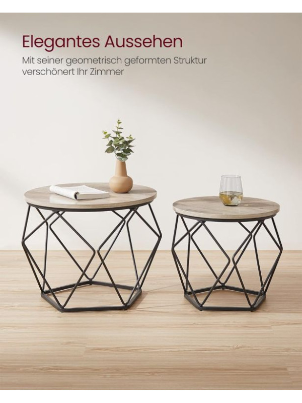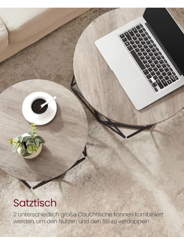 Sada 2 konferenčných stolíkov, industriálny štýl,svetlohnedá