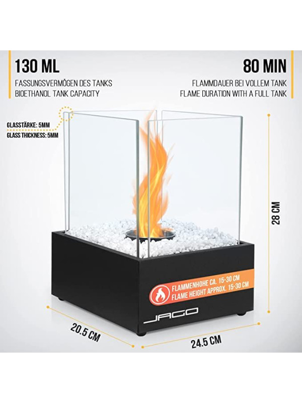 Stolný krb nerezový, čierny, 245 x 205 x 280 mm