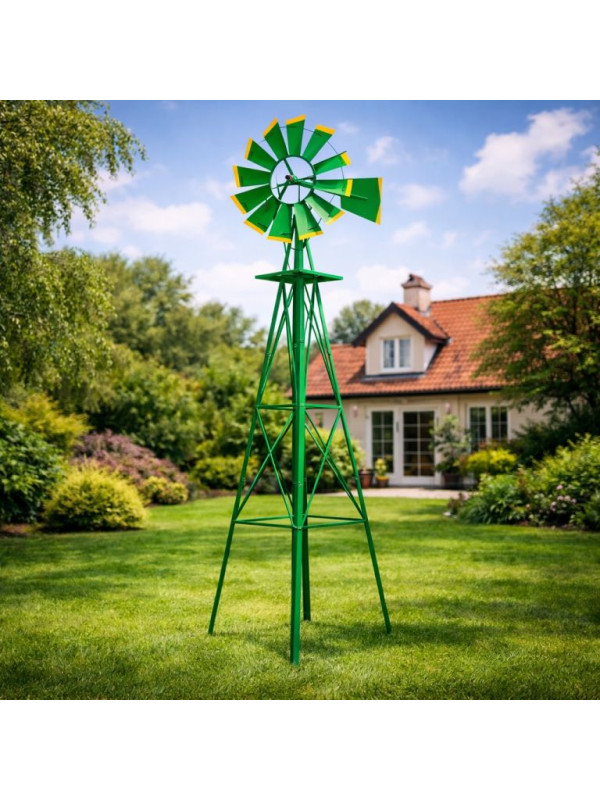 Velký větrník v americkém stylu! Tento větrník je přesná replika amerického větrníku. Tyto větrníky lze dodnes najít na mnoha amerických dvorech. Větrník má kuličková ložiska, která zaručují lehký a klidný běh větrníku.