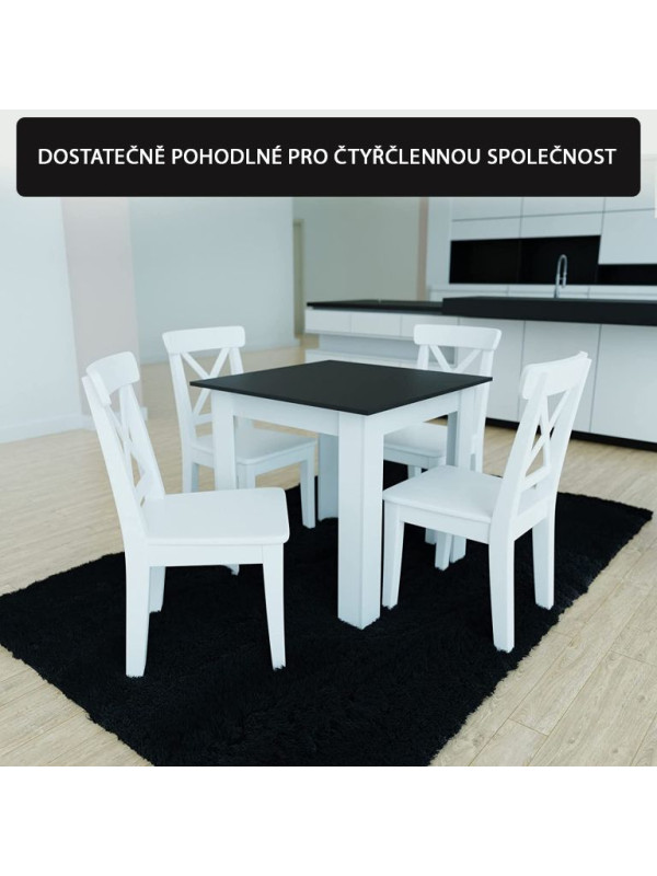 MIADOMODO jedálenský stôl pre 4 osoby, čierny, 80x80x76,5 cm