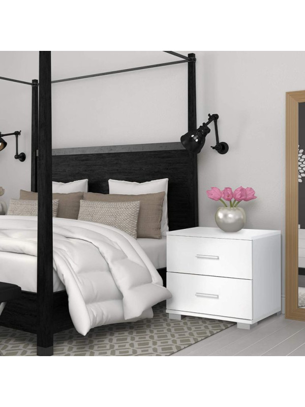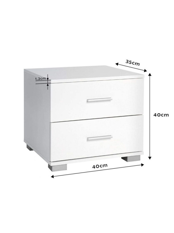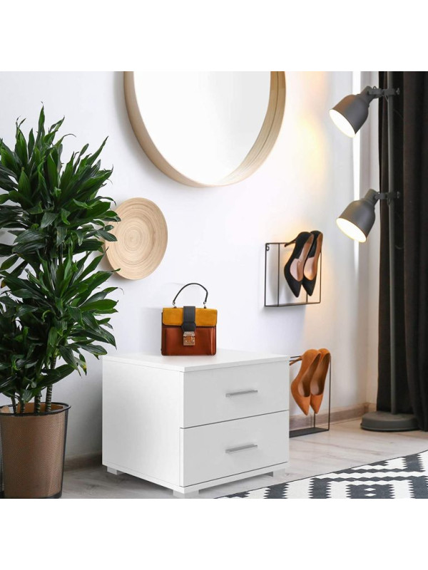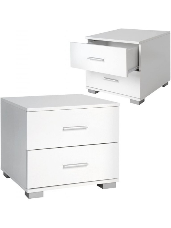 Získajte vďaka týmto stolíkom viac úložného priestoru vo Vašej spálni, bonusom Vám bude ich nadčasový dizajn. Nočné stolíky sú vyrobené z robustného a ľahko udržiavateľného MDF a majú kovové úchyty. Dve zásuvky ponúkajú priestor pre okuliare na čítanie, knihy a ďalšie. Alternatívne môžete skrinky použiť aj ako telefónne skrinky alebo malý kôš na bielizeň.