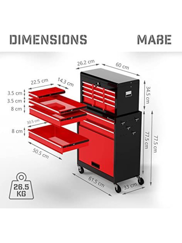 Pojazdná dielenská skriňa, 5 zásuviek, 615 x 330 x 1085 mm