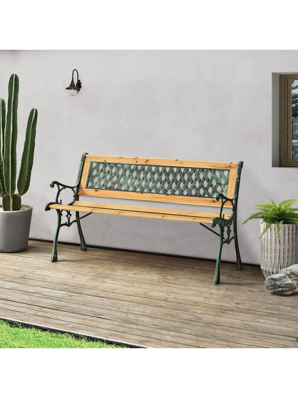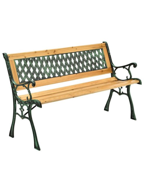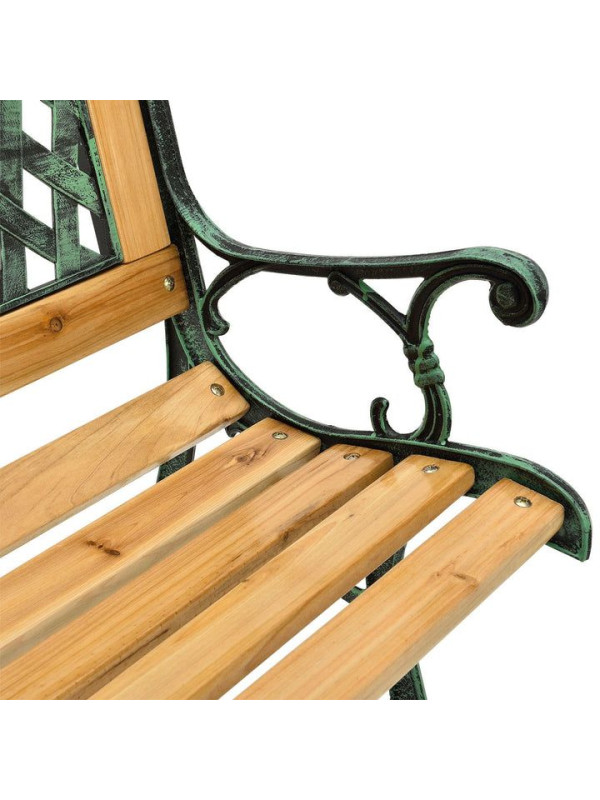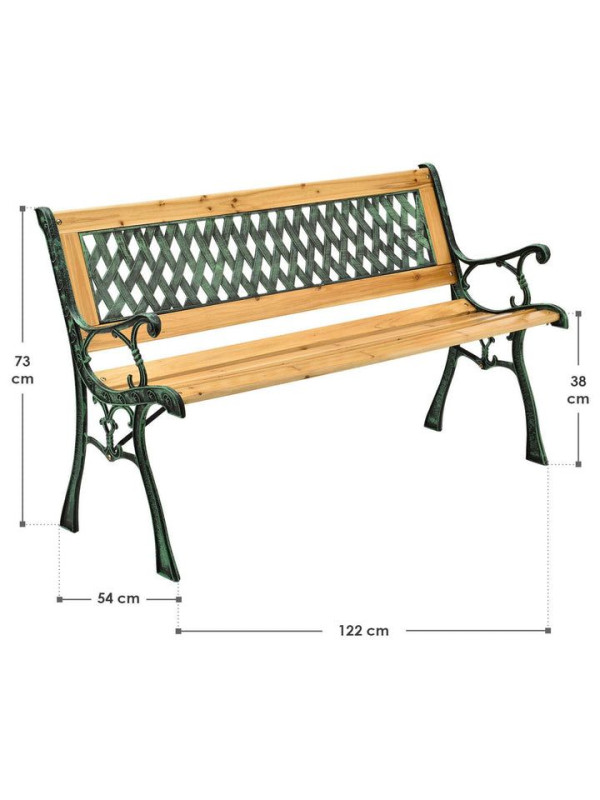 Záhradná lavička 122 cm, drevo/liatina, 2-miestna