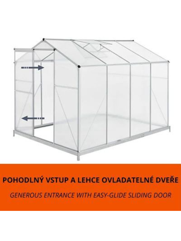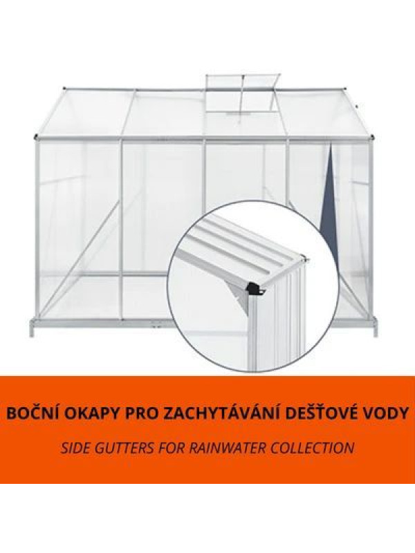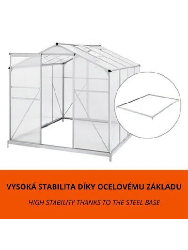 4,75 m² záhradný skleník s hliníkovým rámom a podstavcom