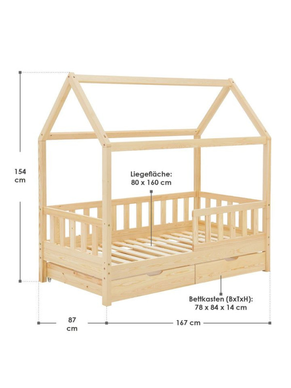 Detská posteľ v tvare domčeka vytvára pokojné a bezpečné miesto na spanie a odpočinok pre vaše dieťa. Vďaka svojmu jednoduchému dizajnu sa ľahko hodí do každej detskej izby a ponúka priestor, kde sa vaše dieťa bude každý deň cítiť pohodlne.