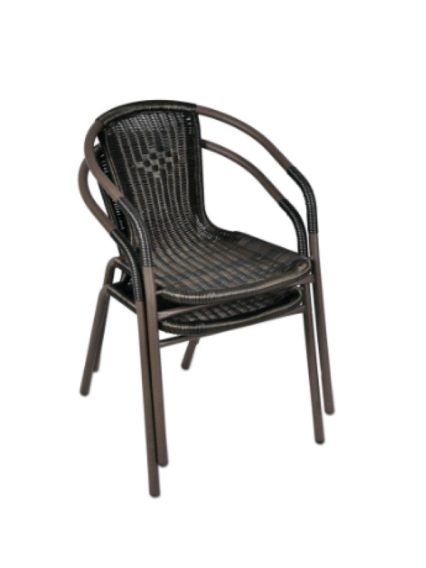 Táto stohovateľná stolička je ideálna pre posedenie na záhrade, terase či balkóne. Táto robustná, ale veľmi ľahká stolička je vyrobená z polyratanu a je veľmi pohodlná. Materiál použitý na výrobu nepotrebuje takmer žiadnu údržbu ani špeciálnu starostlivosť, je odolný proti poveternostným vplyvom.