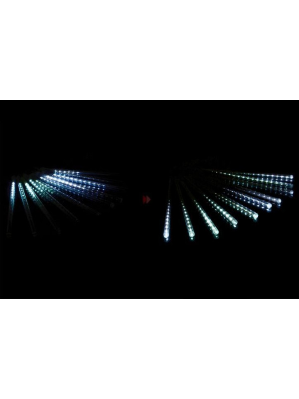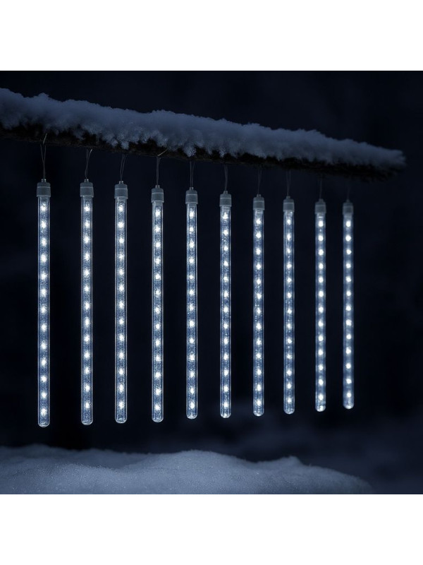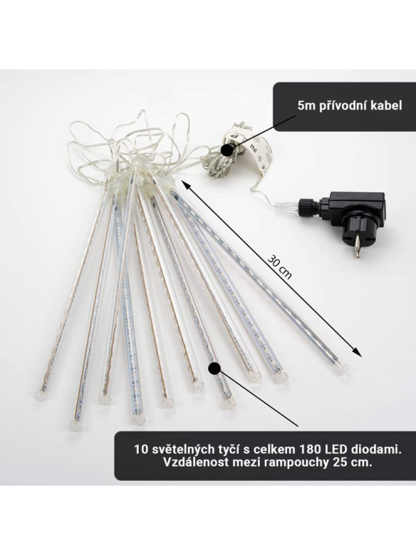 Doprajte si prekrásne vianočné osvetlenie v tvare cencúľov s efektom meteorov alebo vodopádu. Je určené na použitie vo vnútorných i vonkajších priestoroch. Osvetlenie je vhodné nielen na Vianoce, ale na akúkoľvek príležitosť predovšetkým počas chladnejšieho obdobia roka. Prívodné vedenie od transformátora k prvej tyči je dlhé približne 5 metrov, takže máte dostatok priestoru na umiestnenie svetelných tyčí.