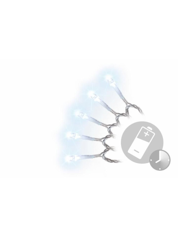 Vďaka zabudovanému časovému spínaču sa môžete rozhodnúť, kedy sa má Vaše osvetlenie zapnúť. Jednoducho si tlačidlom navolíte čas, kedy sa Vaša dekorácia rozsvieti. Uloží sa tým interval, v ktorom diódy 6 hodín svietia a 18 hodín sú vypnuté.