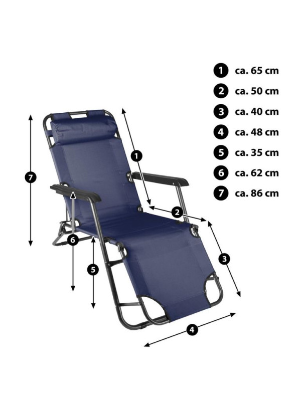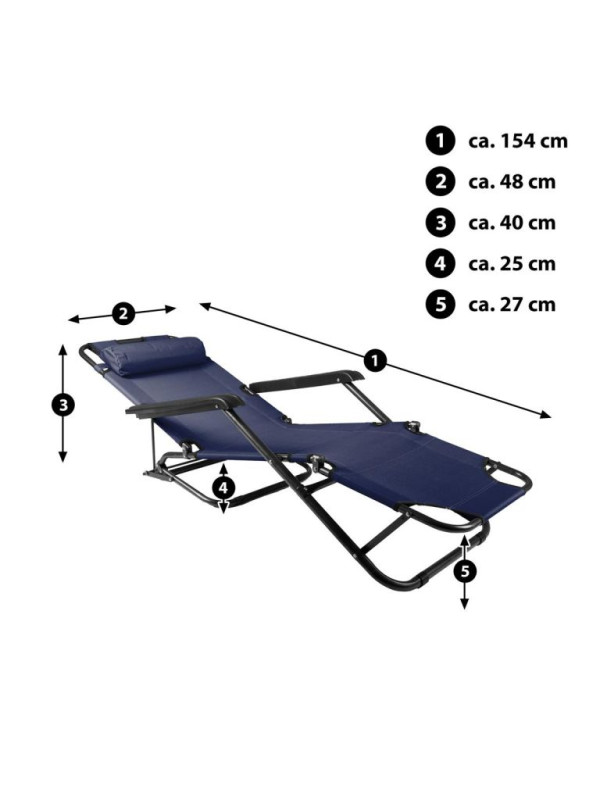 Praktické skladacie ležadlo pre príjemné chvíle na Vašej záhrade. Ležadlo je vhodné na záhradu, terasu, ale aj na dovolenku. Súčasťou je tiež vankúš pod hlavu, ktorý je možné odopnúť.