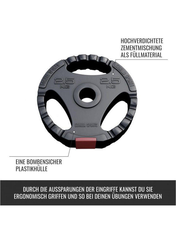 Gorilla Sports Kotúč potiahnutý plastom, výplň cement, 2,5 kg