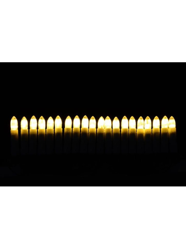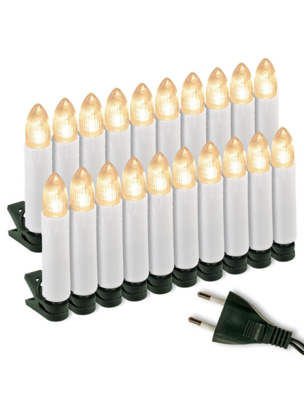 Chcete vyčarovať rovnaké Vianoce ako keď ste boli ešte deťmi? Nie je nič jednoduchšie. Použite pri zdobení vianočného stromčeka tieto sviečky - obsahujú 20 LED diód, ktoré vyžarujú teplé biele svetlo. Na stromček ich upevníte pomocou svoriek a svetlo vyžarujú na vzdialenosť cca 40 cm. Sviečky sú vhodné iba pre vnútorné použitie!