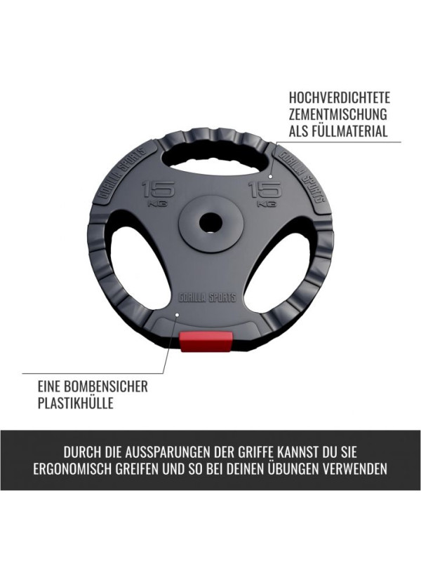 Gorilla Sports Kotúč potiahnutý plastom, výplň cement, 15 kg