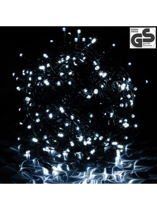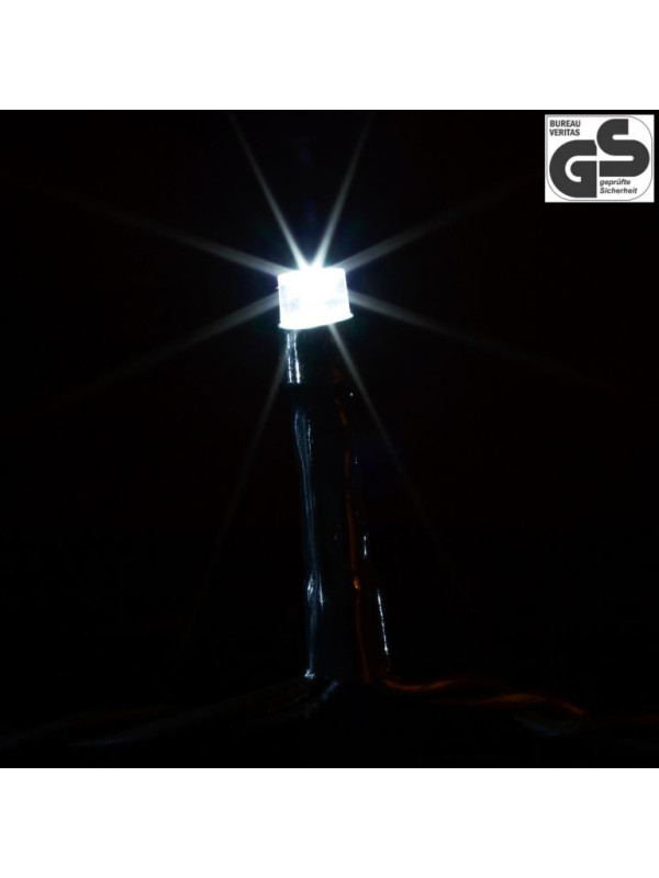 Svetelná reťaz vhodná pre použitie v interiéri aj exteriéri - na okno alebo chodbu, na dom alebo stromček. Osvetlenie nie je výhradne určené na dobu Vianoc, ale môžete ho využiť aj na osvetlenie Vášho stanu či záhrady počas letných mesiacov. LED diódy sú obľúbenou náhradou za klasické žiarovky. V porovnaní s klasickými žiarovkami LED diódy nevyžarujú teplo, sú odolné voči otrasom a môžete vďaka nim ušetriť takmer 90 % energie, ktorú by ste inak spotrebovali na klasické žiarovky. Priemerná životnosť LED diódy je 2 000 hodín svietenia (normálna žiarovka cca 1 000 hodín v závislosti na svietivosti). LED reťaz spĺňa nemecké normy, je na ňu vystavený certifikát bezpečnosti GS a spĺňa stupeň krytia IP 44 (pre použitie v exteriéri). Bez blikajúcej funkcie.