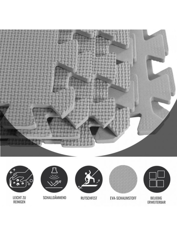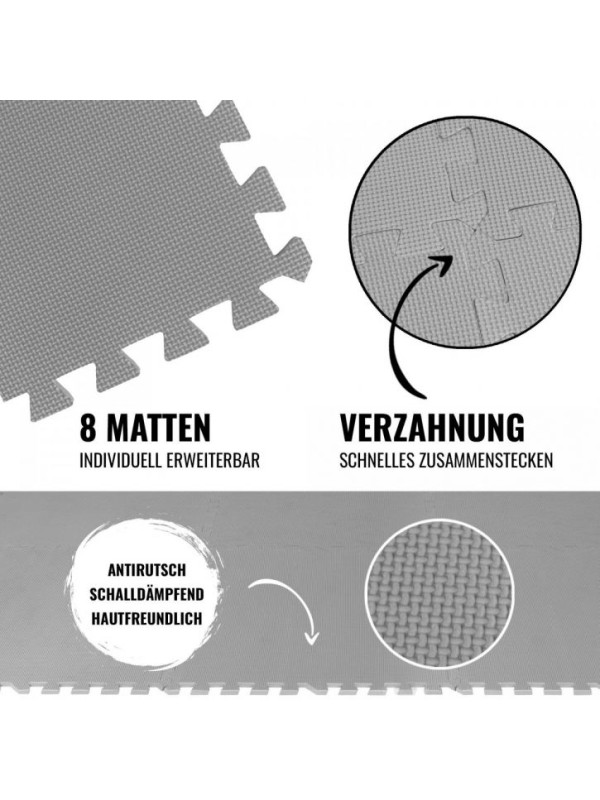 8-dielna sada ochranných podložiek chráni vašu podlahu pred poškriabaním a oderom ako ideálny základ pre vaše zariadenia a príslušenstvo. Izoluje teplo, hluk a zvuk a je príjemná na dotyk. Ľahko sa čistí a je vhodná ako podložka na cvičenie na podlahe.