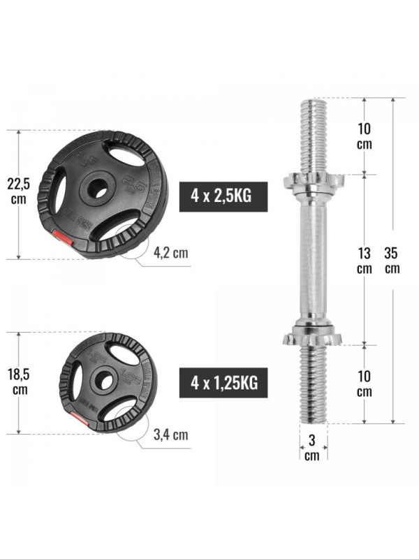 - 4 x záťažový kotúč 2,5 kg