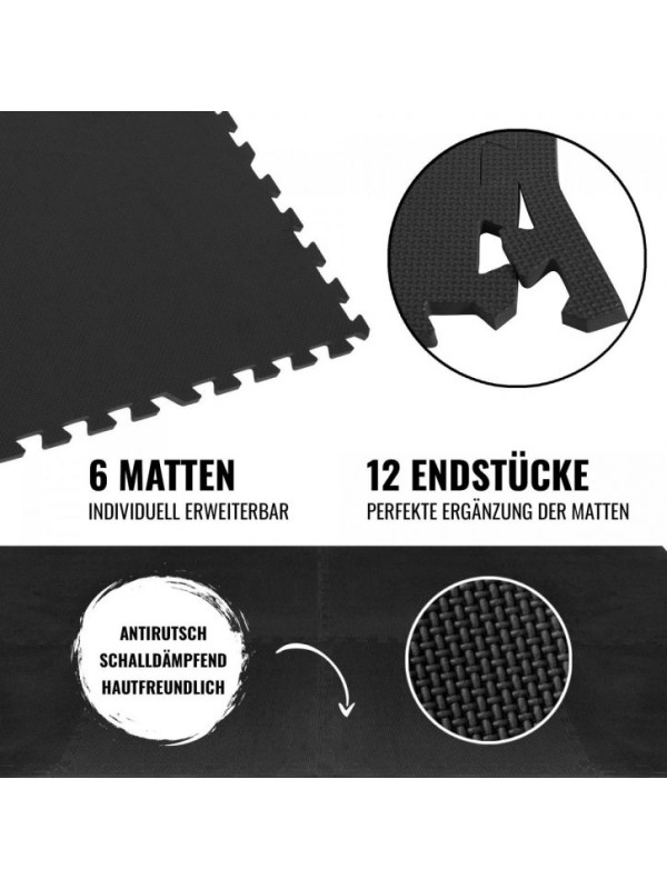 Puzzle ochranná podložka so 6 štvorcovými rohožami a 12 zakončeniami