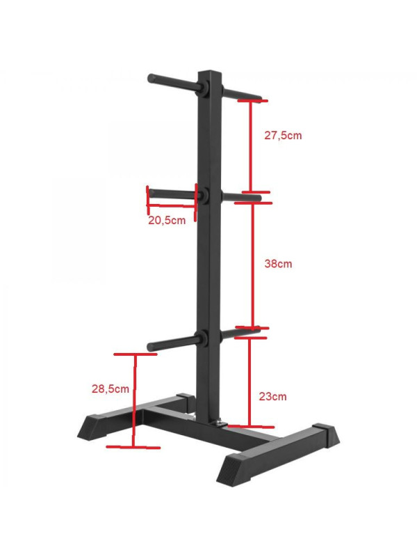 Nič nie je otravnejšie a tiež nebezpečnejšie ako závažia ležiace na podlahe. Odteraz si môžete ušetriť starosti s ich zdvíhaním a náš stojan navyše zaisťuje, že už viac nezakopnete o kotúč ležiaci na podlahe v zápale tréningu.