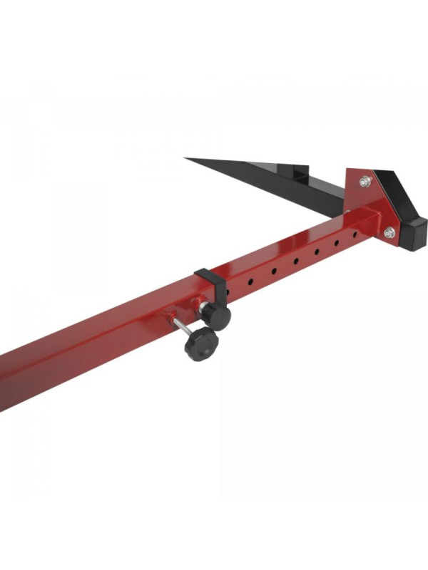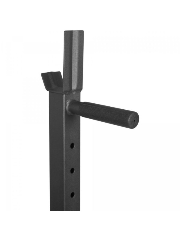 Profesionálny stojan na veľkú činku s jednoduchým nastavením zabespečuje dostatok priestoru pre maximálnu bezpečnosť.