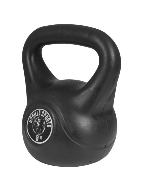Gorilla Sports Kettlebell činka, plast, čierna, 8 kg