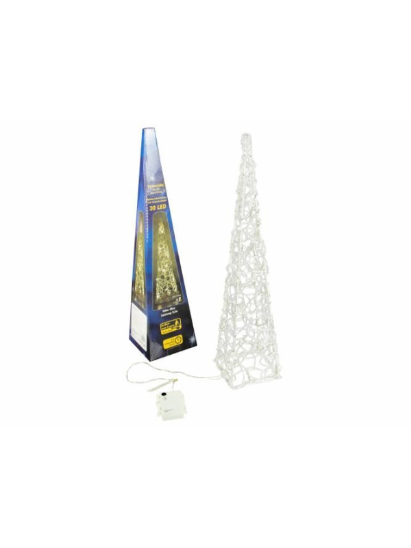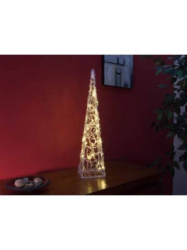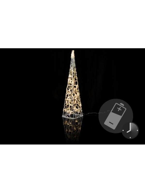 Vianočný akrylový ihlan 60 cm - teple biely, na batérie