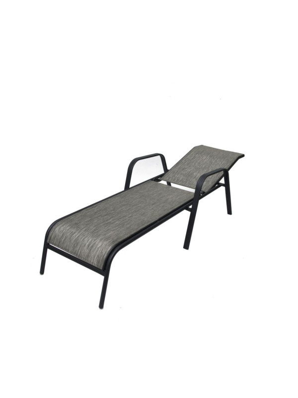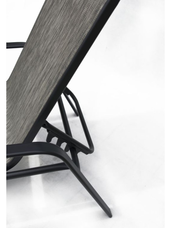 Elegantné polohovacie lehátko so stabilnou kovovou kostrou sivej farby. Sedák a oporná plocha je z textílie. Lehátko je vhodné na záhrady aj terasy. Je možné si vybrať z viacerých farebných kombinácií.