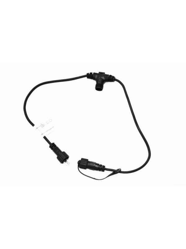 "Prečo svetelný systém diLED? Jedná sa o profesionálny svetelný systém vhodný pre vnútorné aj vonkajšie použitie s veľkým dôrazom kladeným na bezpečnost. LED diódy sú odolné proti otrasom, nevydávajú teplo a majú životnosť až 50 000 hodín. Diódy použité v osvetlení diLED sú ešte úspornejšie ako klasické LED diódy, príkon na 100 diód je len 3 W. Najväčšou výhodou diLED systému je, že si ho môžete prispôsobiť podľa svojich možností a predstáv. Tieto osvetlenia možno na seba napájať až do rozšírenia 2 000 diód v spojení s daným typom trafa. Technické údaje: predlžovací kábel s 2 prípojkami čierny kábel 1 vstup 2 výstupy vzdialenosť medzi výstupmi 25 cm dĺžka: 60 cm pre vonkajšie použitie možnosť rozšírenia až na 2000 LED diód so všetkými diLED produkty Obsah balenia: diLED predlžovací kábel s 2 prípojkami"