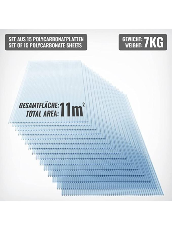 Tieto polykarbonátové dosky majú skvelú izolačnú vlastnosť, vďaka tomu sú lepšou voľbou ako sklo. Dosky majú veľkú výhodu v tom, že si ich môžete ľubovoľne zrezať tak aby Vám vyhovoval rozmer. Sú skutočne flexibilné, môžete ich kombinovať podľa svojich potrieb, pretože ľahko pokryjú plochu až 11 m². Polykarbonátové dosky sú duté, priehľadné, ľahké a majú ochranu proti UV žiareniu.