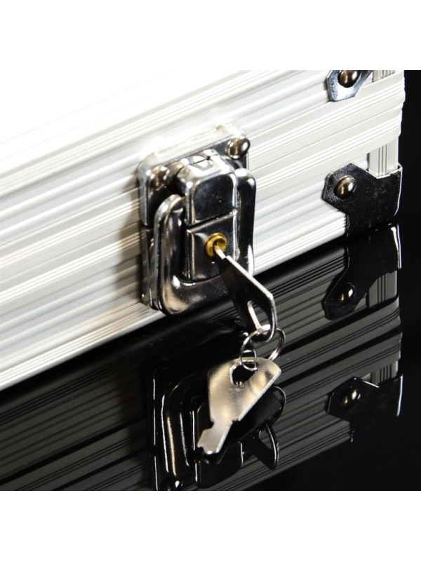 Robustný hliníkový kufor s dvoma zámkami je ideálny až pre 1 000 pokerových žetónov. Je potrebné dokúpiť žetóny, ktoré si môžete individuálne vybrať, zvyšok vybavenia je kompletný.
