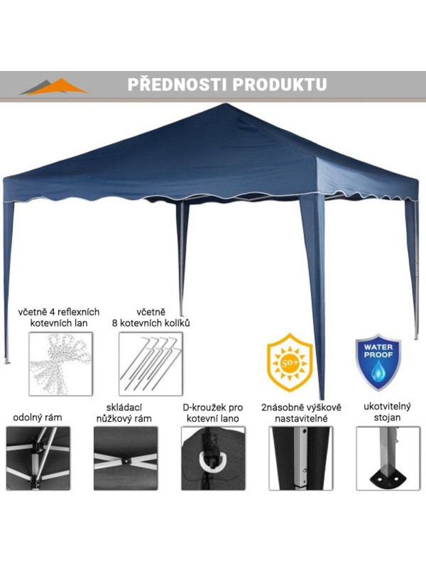INSTENT záhradný párty stan - 3 x 3 m, modrá + 4 bočnice