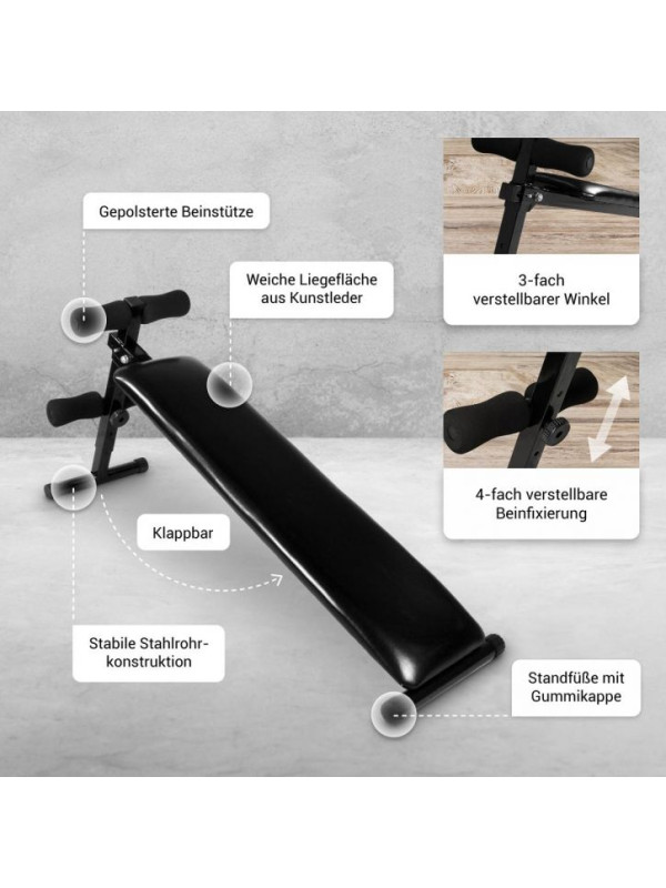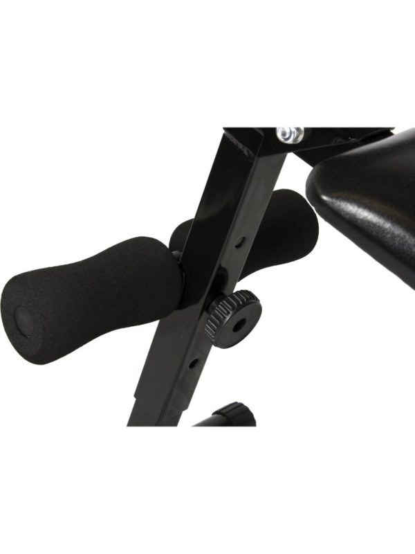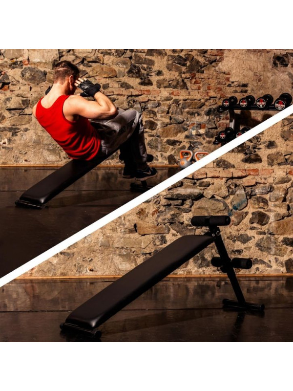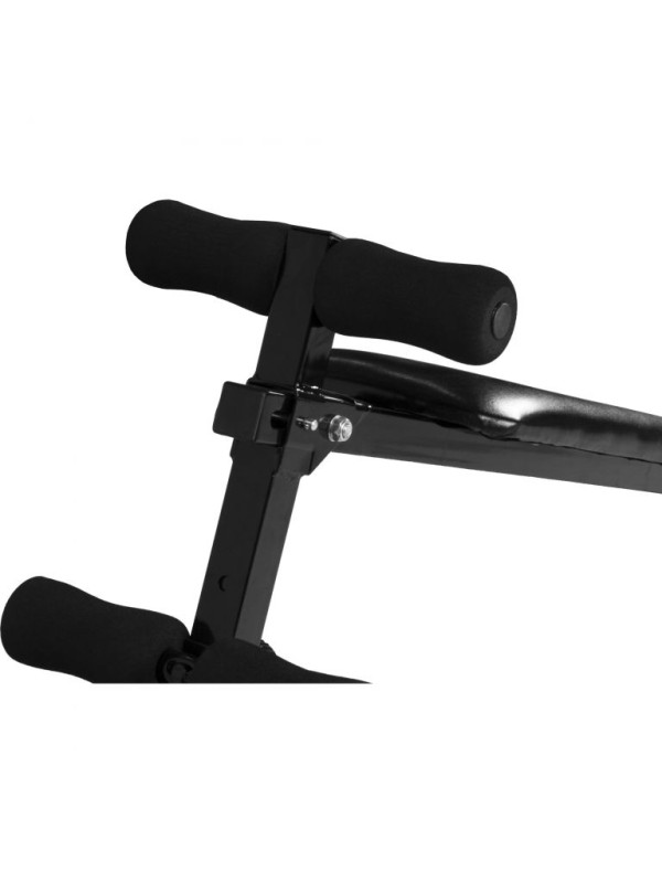 Šikmá polohovateľná lavička vhodná na precvičovanie brušných a chrbtových svalov. Stabilná oceľová konštrukcia s protišmykovými nôžkami umožňuje bezpečné cvičenie v domácom prostredí.