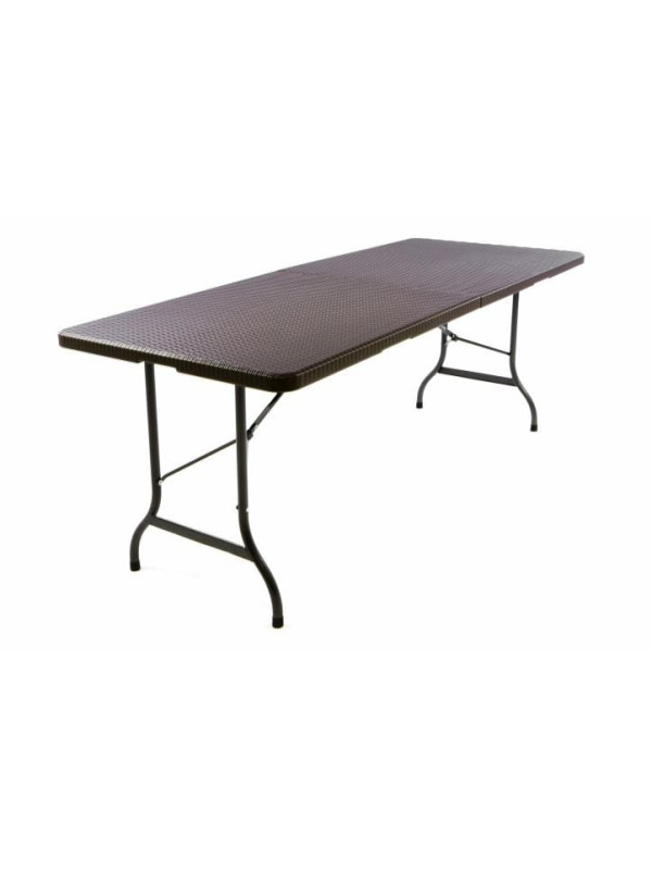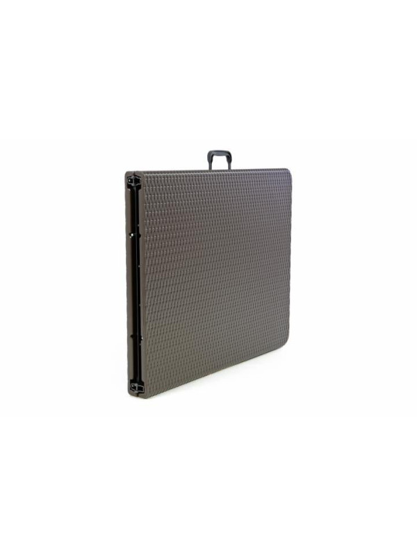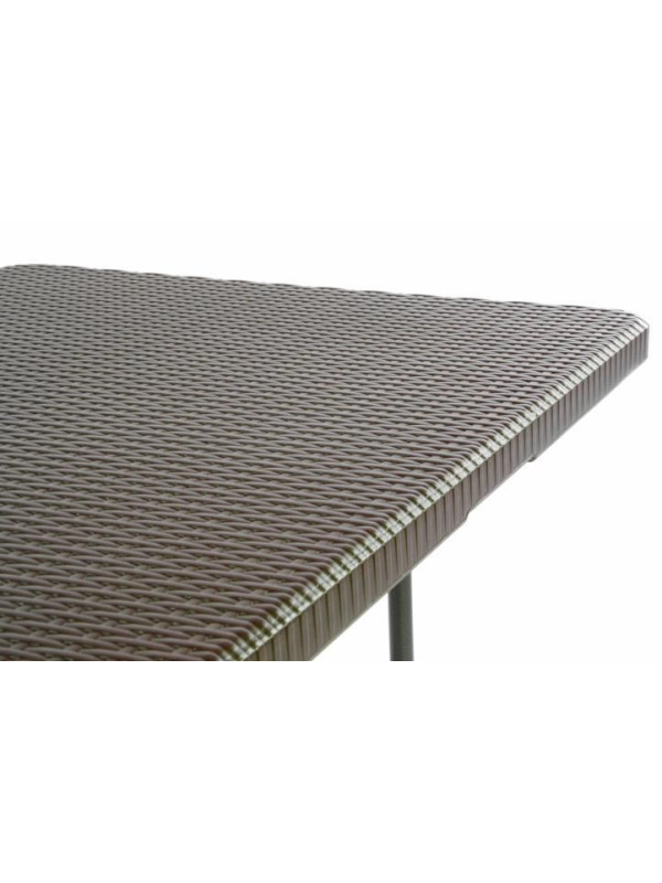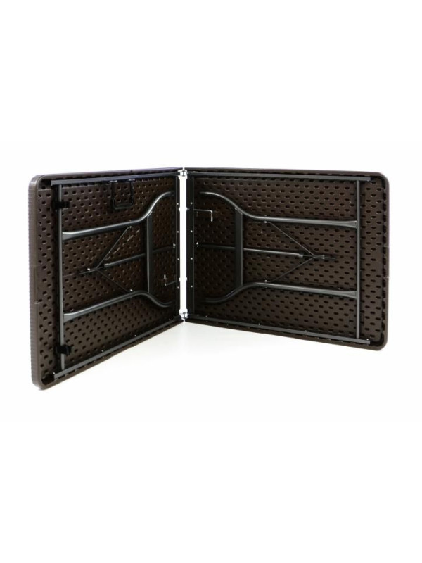 Hnedý skladací stôl Vás zaujme svojím ušľachtilým designom v ratanovom vzhľade. Stôl je postavený počas okamžiku. Pre väčšiu stabilitu sú na spodnej strane umiestnené bezpečnostné čapy. Stôl si môžete vziať so sebou na akúkoľvek párty - integrované držadlo umožňuje jednoduchý transport.
