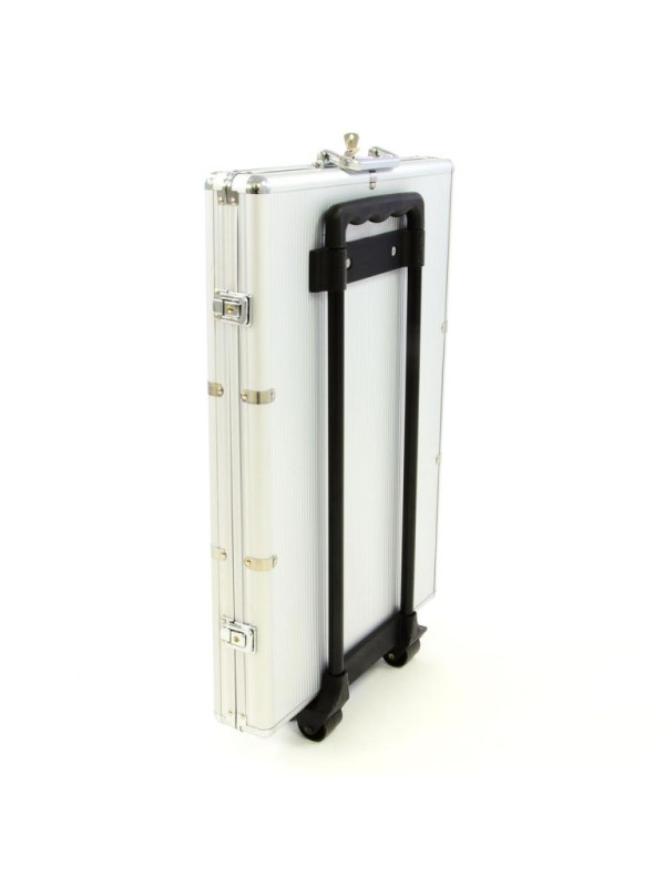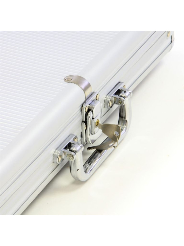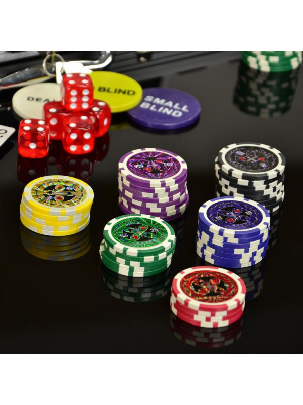 Poker set v praktickej kufríku na kolieskach obsahuje 1000 ks vysoko kvalitných a reflexných laserových žetónov so zaoblenými hranami, troje plastové karty, s ktorými je nemožné podvádzať. Tento set bol vytvorený profesionálnymi hráčmi. Kufrík má kolieska pre ľahšiu prepravu.