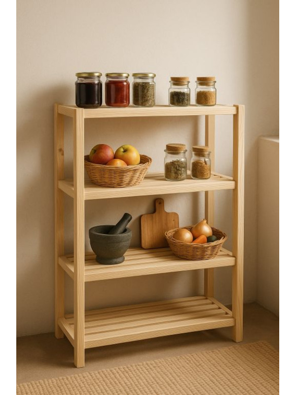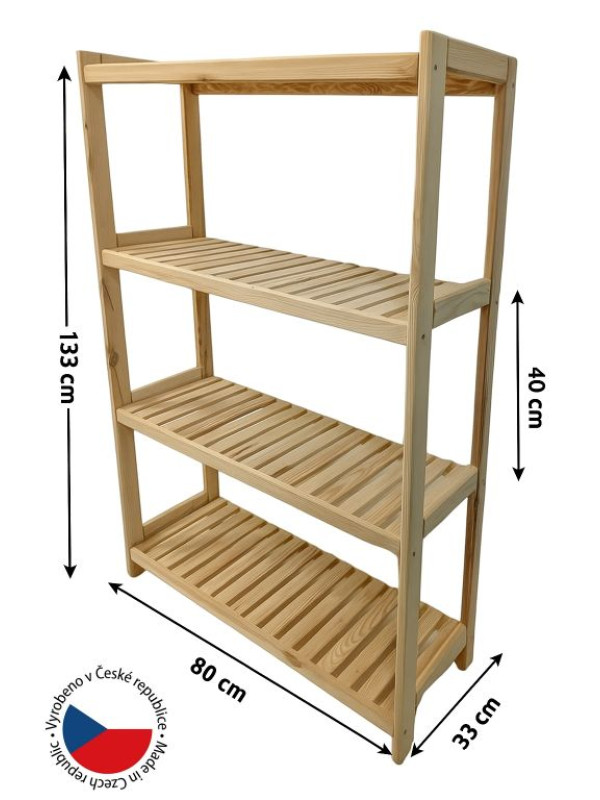 Drevený regál z borovice, 4 police, 133 x 80 x 33 cm, české