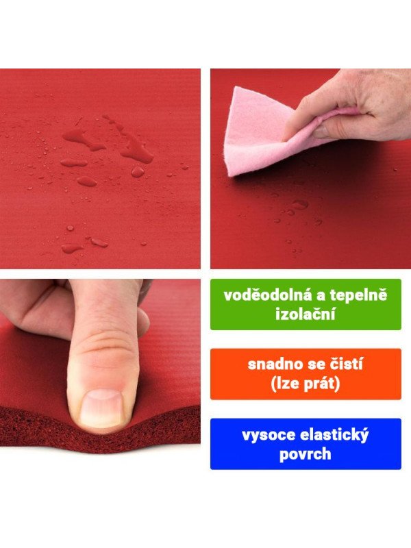 Vysoko kvalitná gymnastická podložka z peny šetrnej k pokožke. Je tiež mimoriadne protišmyková a po použití ju možno ľahko znova zrolovať. Fitness podložka je odolná proti roztrhnutiu a pošmyknutiu je tiež vodeodolná a tepelne izolačná. Bez zmäkčovadiel (bez ftalátov). Tlmí tiež nárazy a zvuk pri náraze, takže môžete chrániť svoje kĺby počas cvičenia. Táto podložka je vďaka svojim tepelnoizolačným vlastnostiam ideálna aj na kempovanie a ako základňa pre lôžko pre hostí.