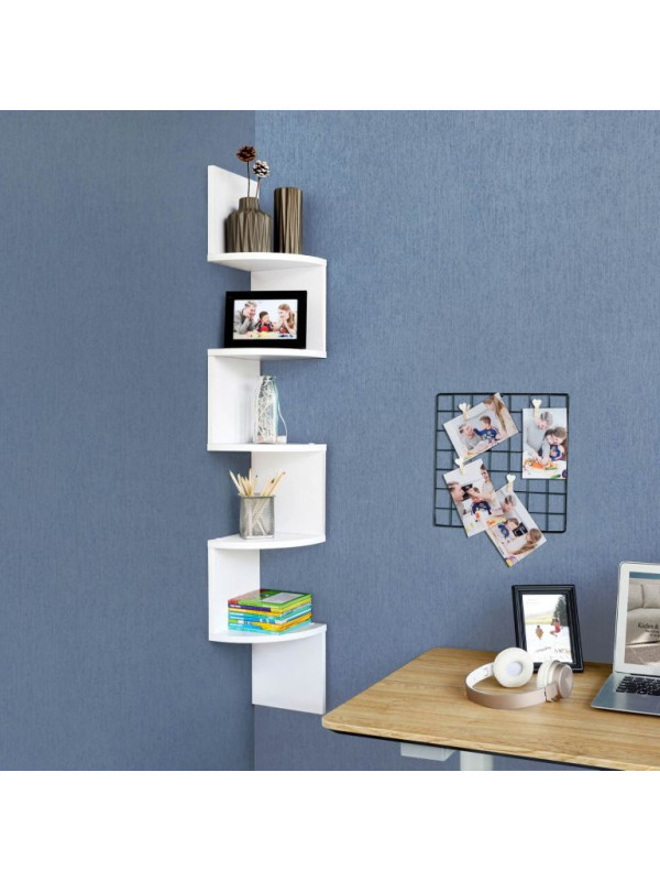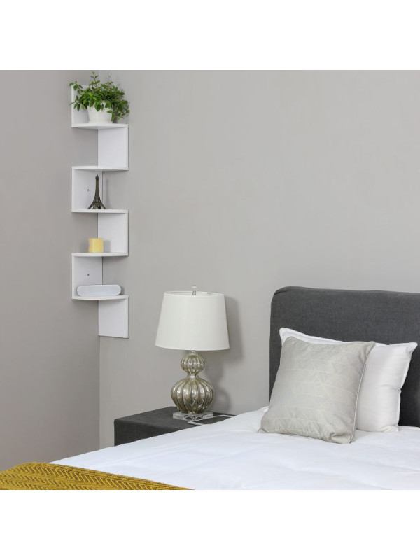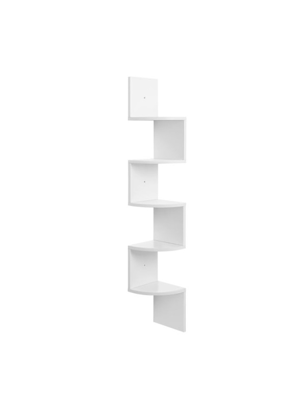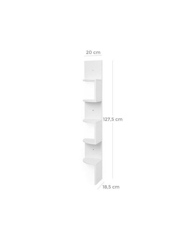 Rohová závesná polica, biela, 5 políc, 20×127 cm